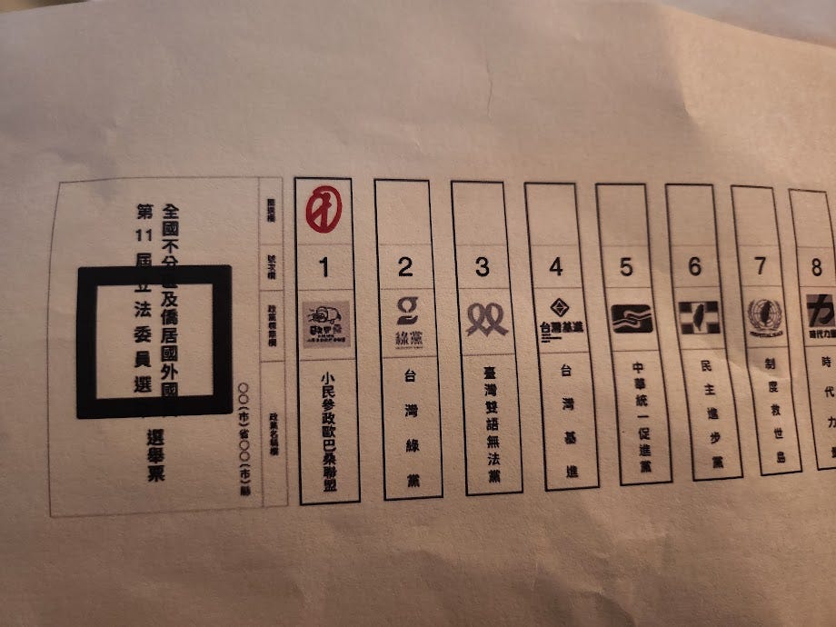 期间有位朋友表示要我远程帮Ta投票,我对此表示不可以,因为中华民国的选举是一定需要到现场的,Ta表示有一点生气,说我们本来就是一次非法的大选。